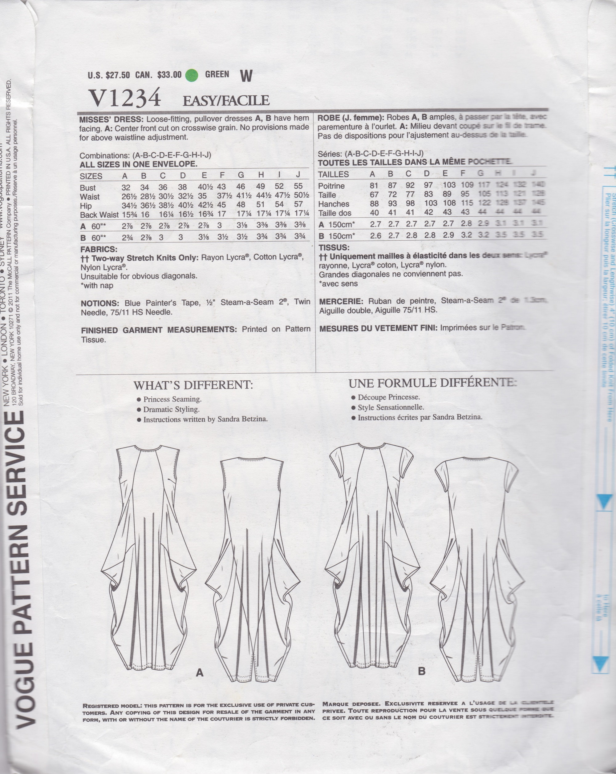 Vogue 1234 Todays Fit Sewing Pattern By Sandra Betzina Etsy Osterreich